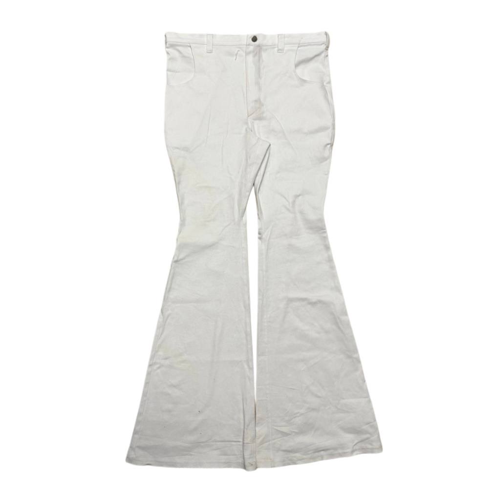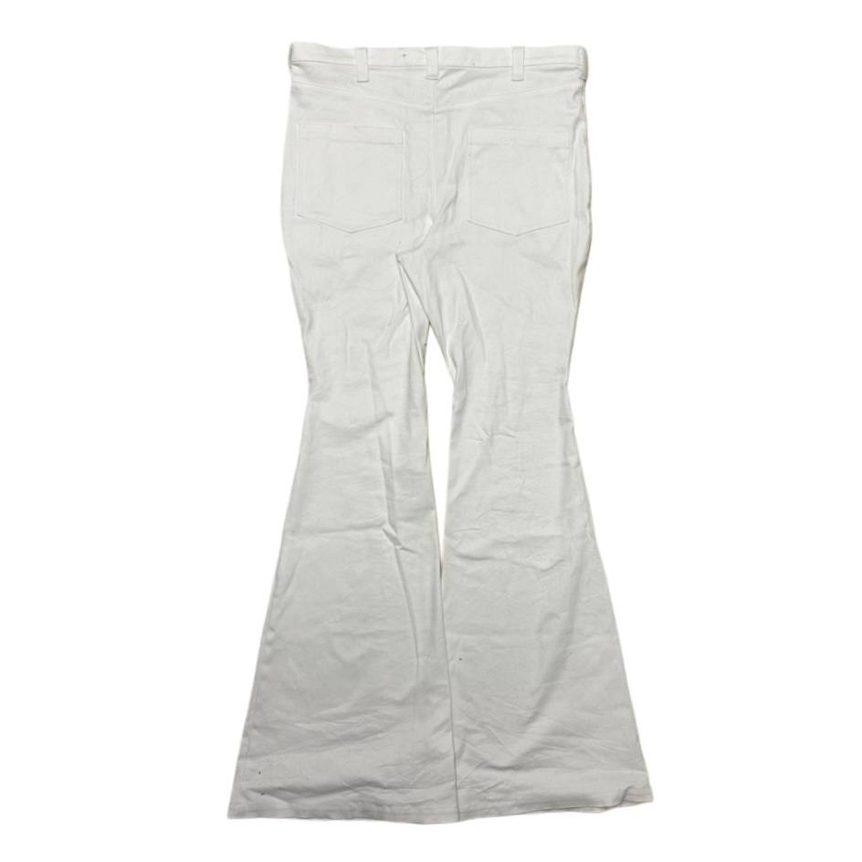 Crafted from 99% cotton, these pants feature a dramatic flared silhouette from the knee. The white fabric naturally develops pronounced, crumpled folds and creases, particularly at the knee, creating an ethereal, angelic aesthetic with heavenly vibes.